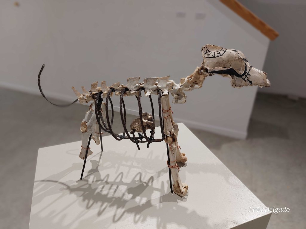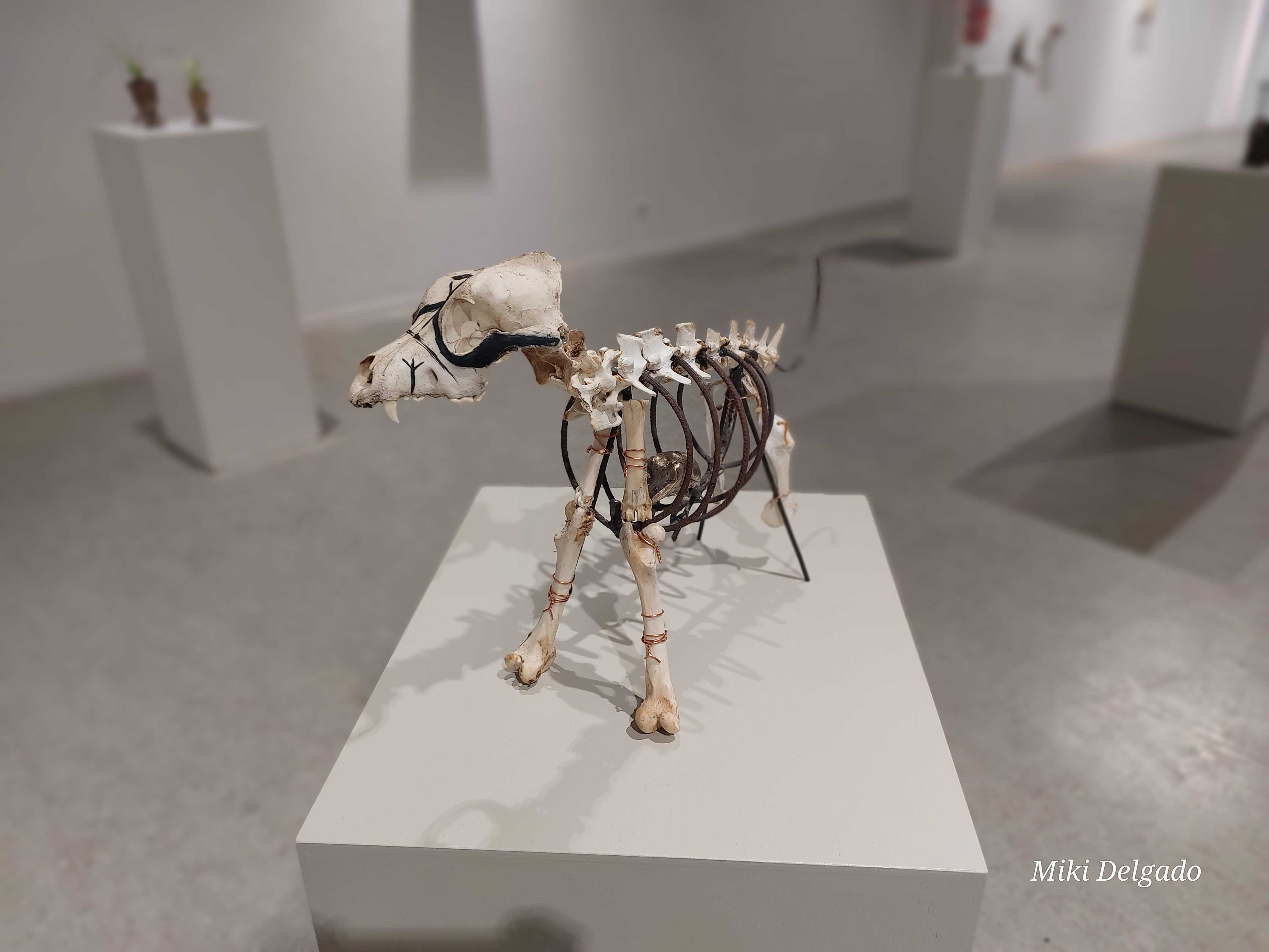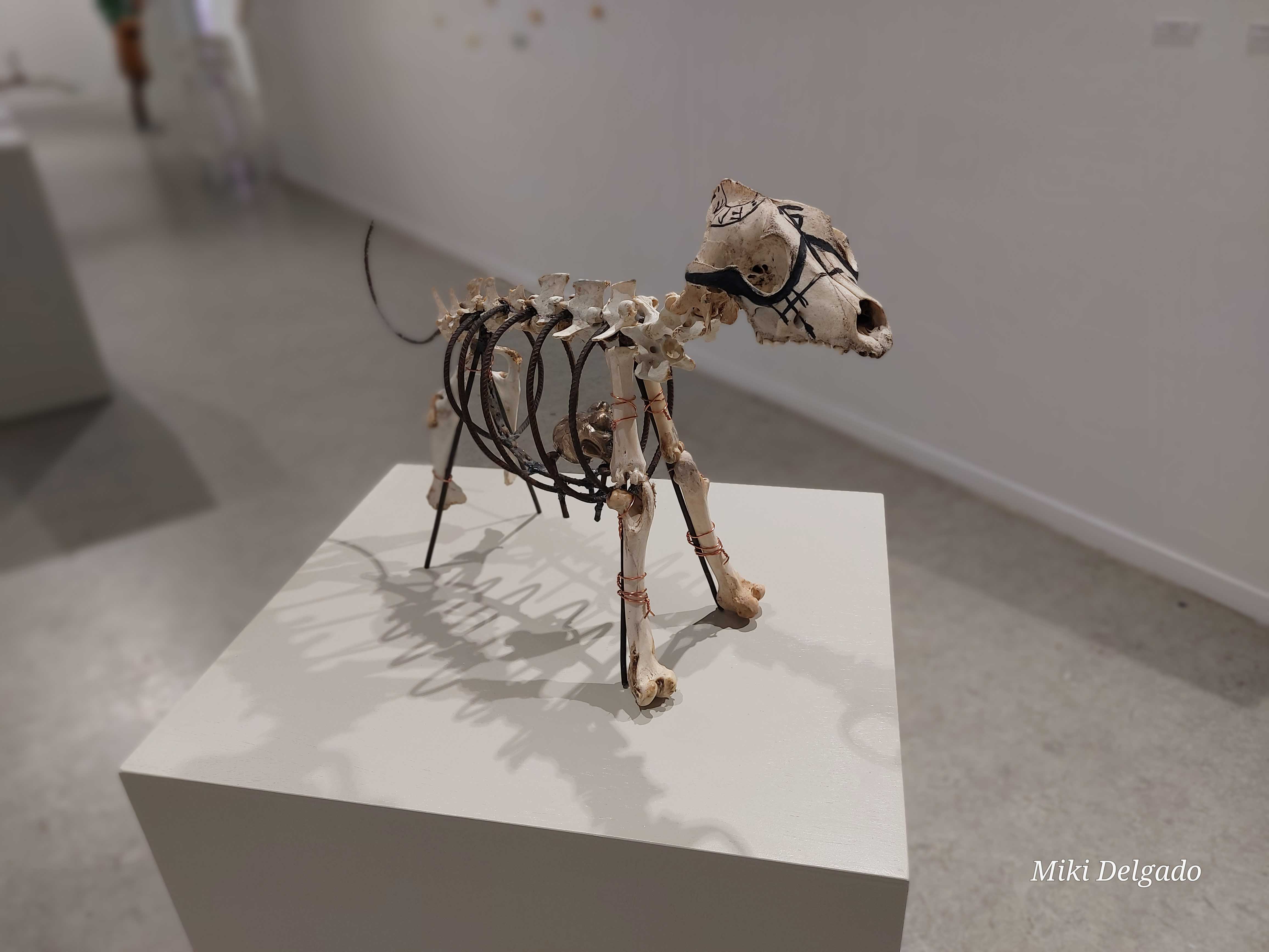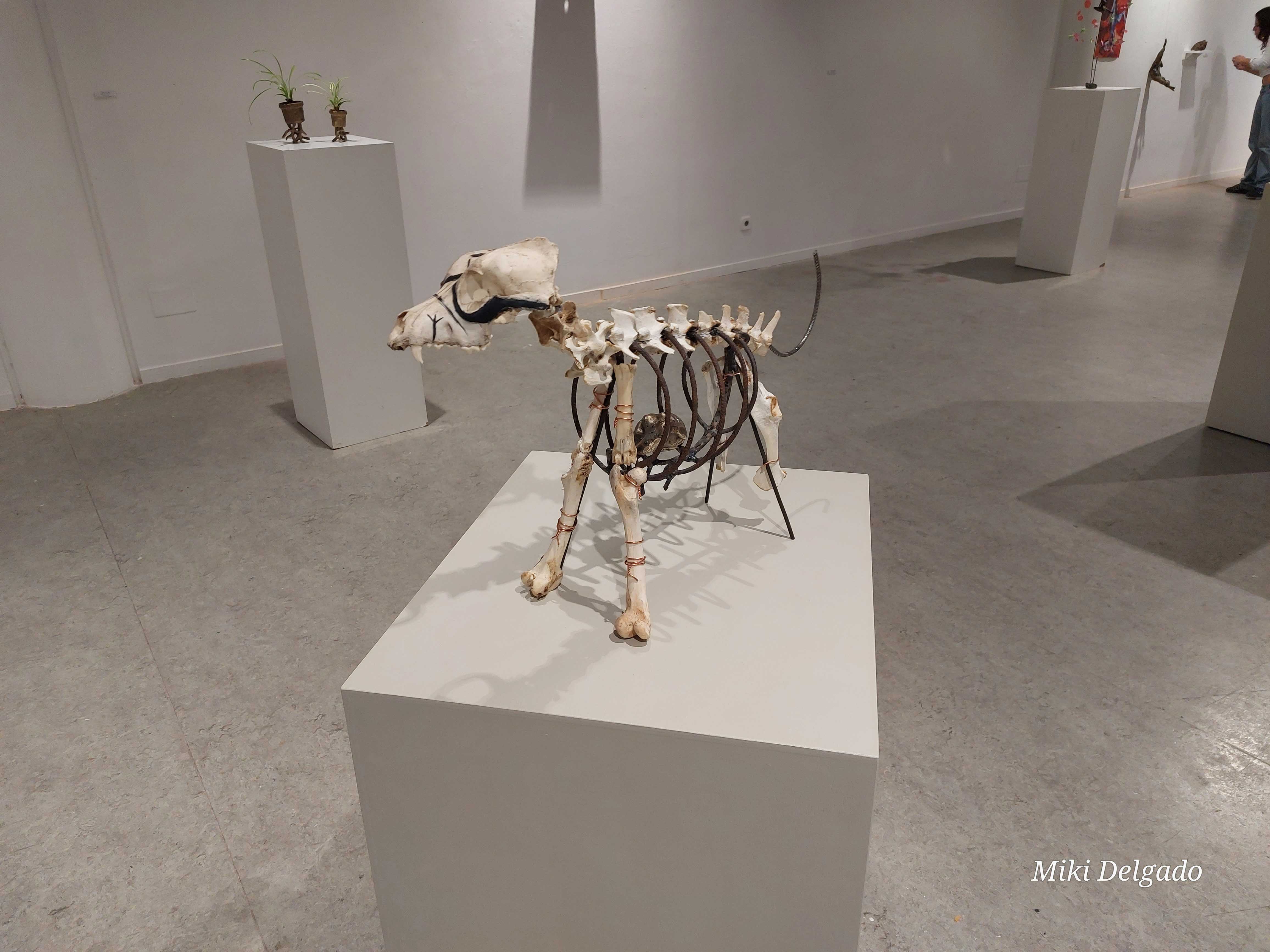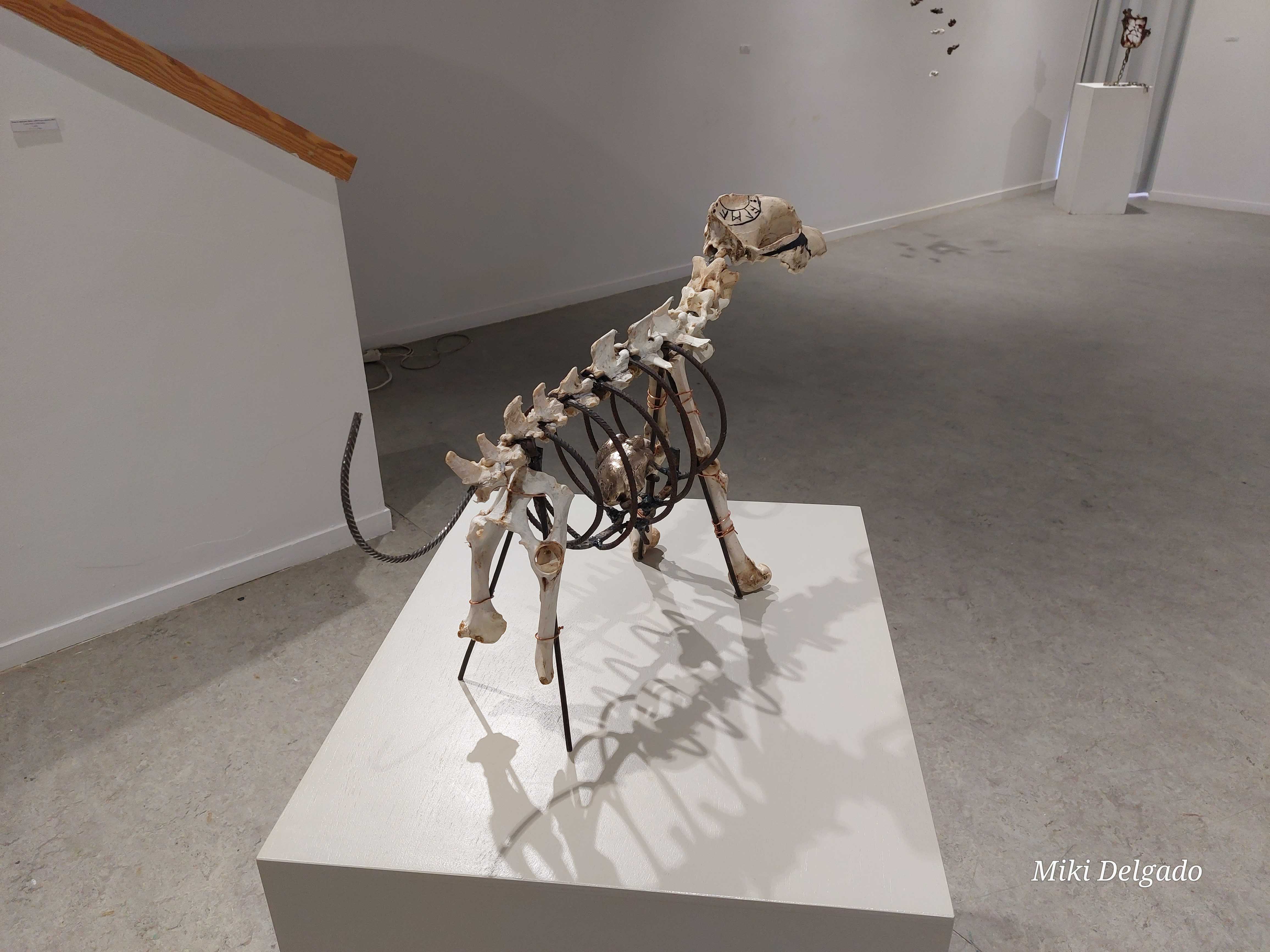 Mi pequeña guerrera I es el origen: un cuerpo recompuesto en hierro y hueso, sostenido por hilos de cobre, donde la anatomía se convierte en lenguaje. De esta estructura nacen más tarde las ovejas de Vellón Deslanado: seres híbridos que prolongan su memoria en movimiento.